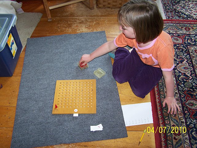The Multiplication Board introduces the child to the concept of multiplication in a hands on way.