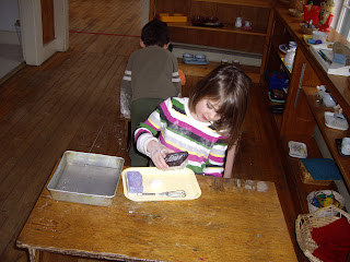 We noticed the children had been looking for animal tracks in the snow outside so this week we made animal track books. We hung control cards on the wall and placed the booklets and worksheets on a table. The children were able to cut out the animal picture and match it to the track and paste it in their book. We discussed this at circle and tried to think of what type of animal tracks we may see in New Hampshire and which ones we probably wouldn’t see around here.