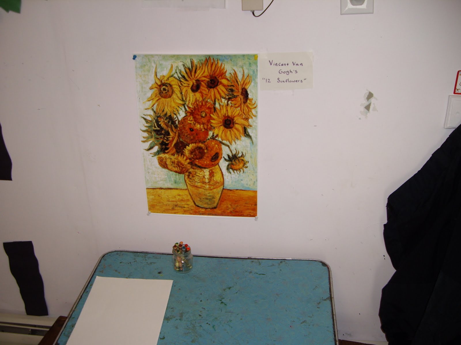 At circle we looked at “Vase with 12 Sunflowers” by Vincent Van Gogh and read a bit about the artist. After reading a bit about Van Gogh, and looking at some of his other paintings we set up the activity so they could draw their own sunflowers. They are looking beautiful! I’ll try to post some of the children’s drawings next week: