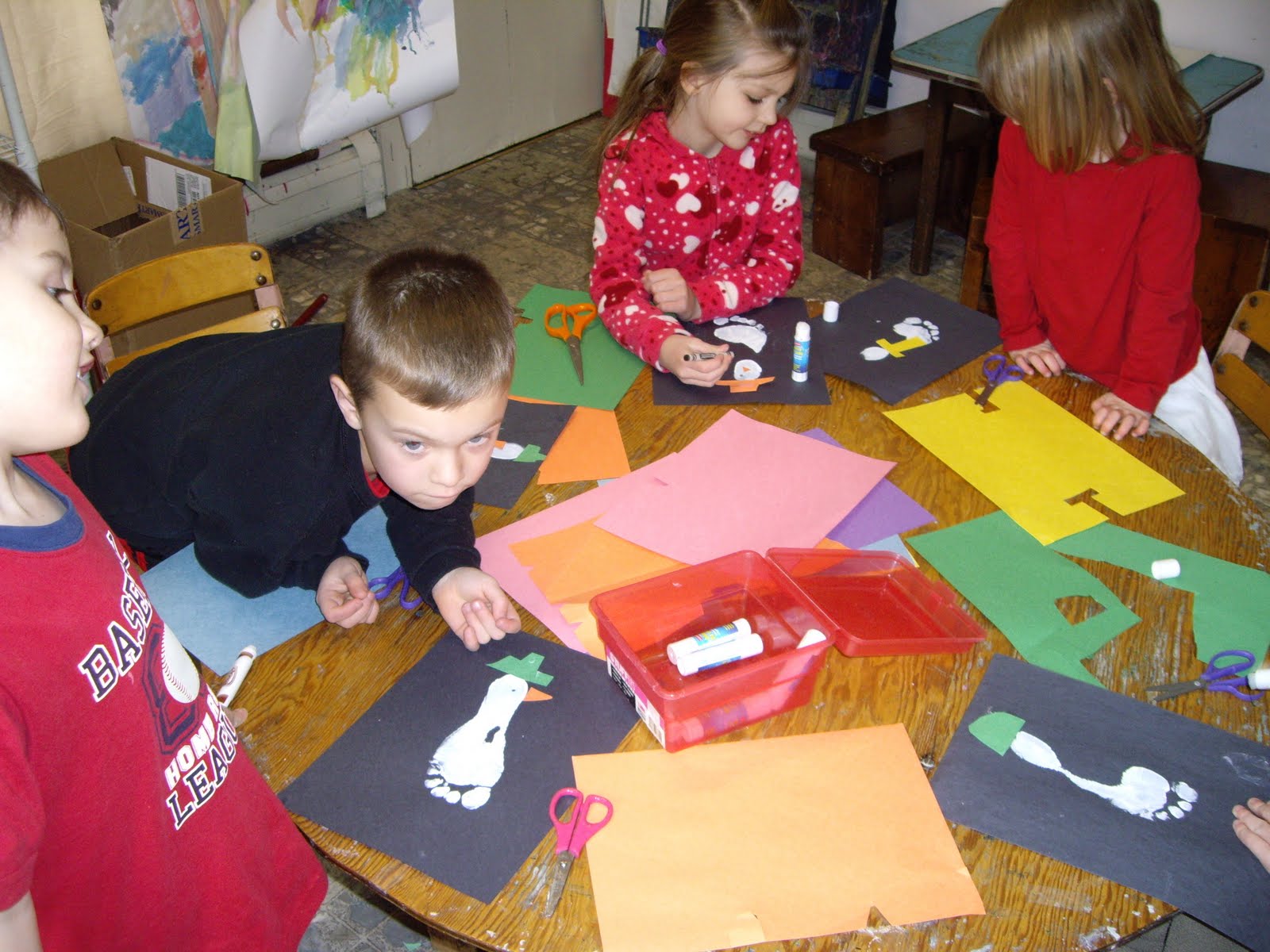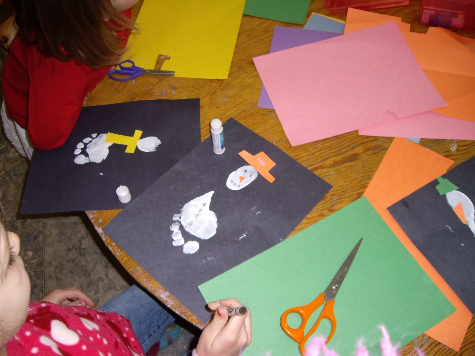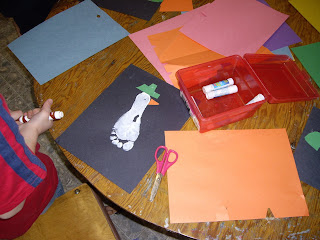 Our Friday friends enjoyed making footprint snowmen, reading “Harold and the Purple Crayon” and writing/drawing their own purple crayon adventure.