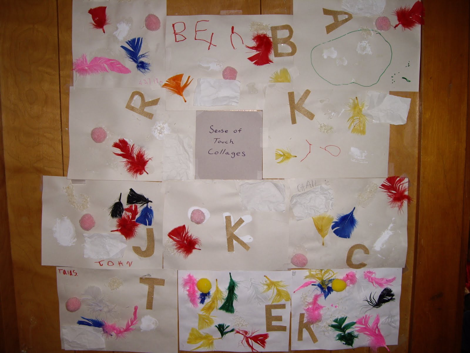 We had a great week investigating the sense of touch. The students felt the different textures of feathers, sand, salt, rice, sandpaper, cotton balls and paper and then pasted them to make beautiful touch collages.